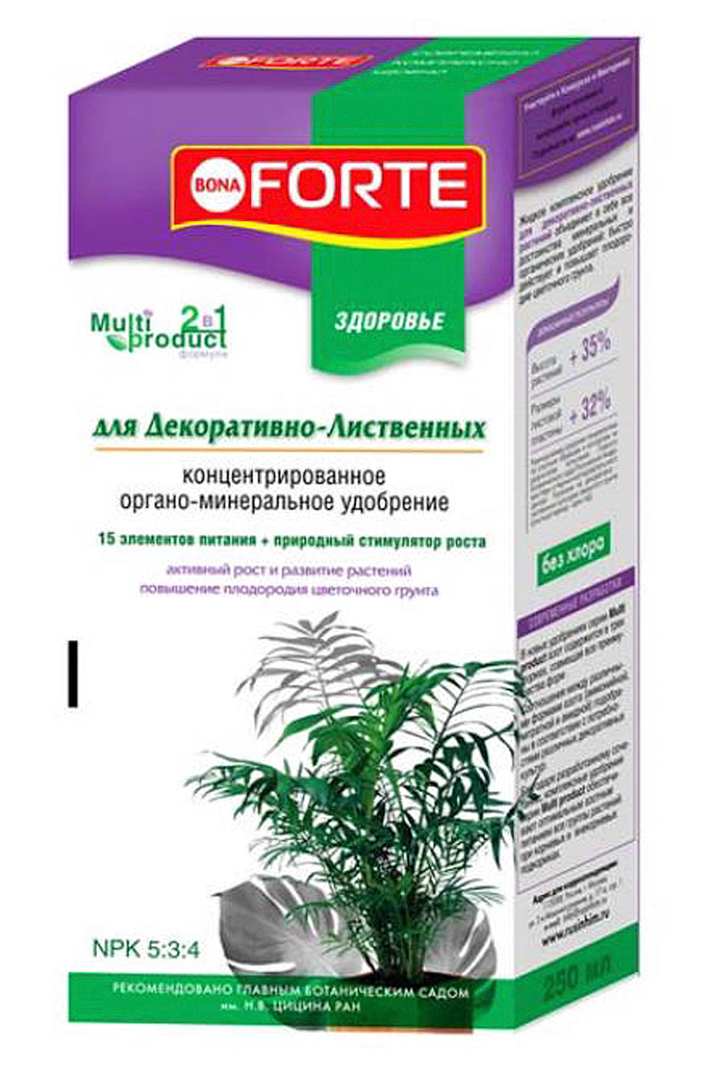 ОписаниеBona Forte жидкое удобрение серии Здоровье для декоративно-лиственных.