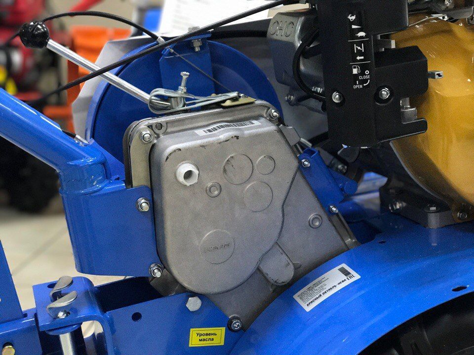 Мотоблок "Нева" МБ 23С-9,0PRO оснащен редуктором с шестеренчато-цепной передачей. Изменение диапазона передач осуществляется путем переброса ремня на двухручьевом шкиве.