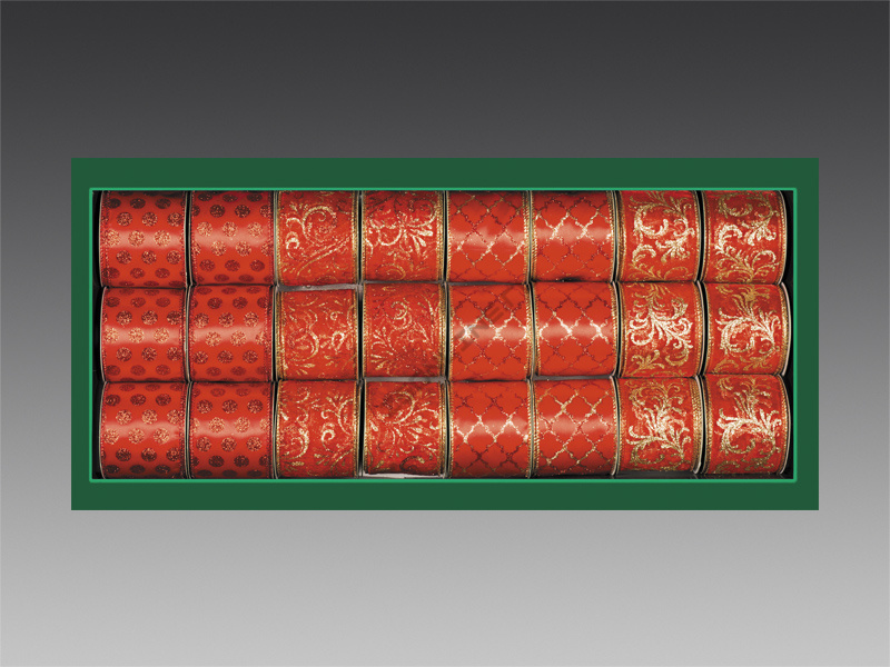 Лента для декорирования красная в горошек/красно-золотая