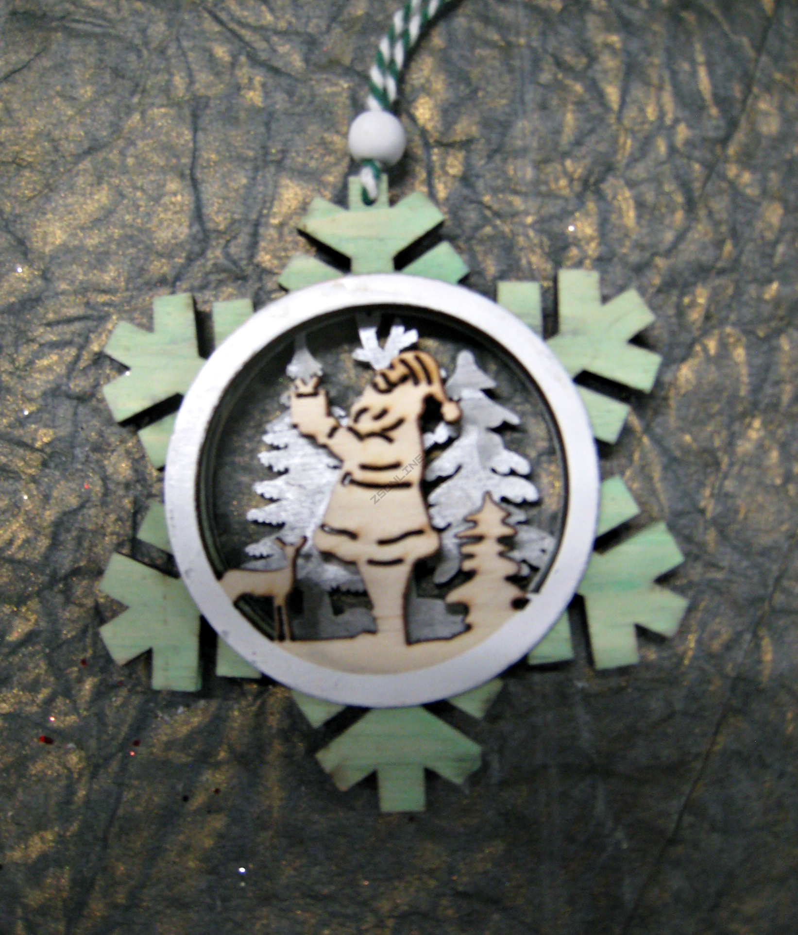 ----Елочное украшение Снежинка,дерево, 10,5см, цвет ментоловый Арт.LK22-Y76029A