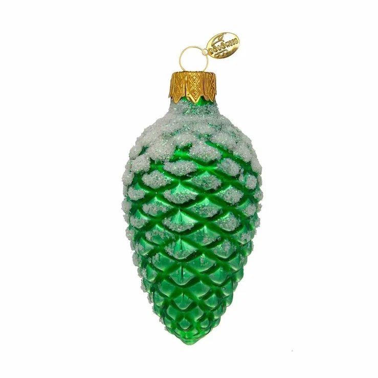 Ёлочное украшение "Шишка в снегу, зеленая", в подарочной упаковке, h-9 см*